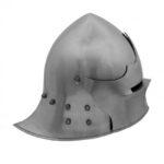 The English Sallet is a distinguished helmet from the 15th century, prized for its balance of protection and mobility. This helmet features a sleek, rounded shape with a characteristic tail at the back to shield the neck, while its open-face or visor design allows excellent visibility and ventilation. Used extensively by English infantry and cavalry, the sallet became popular for its ability to deflect blows and accommodate quick movements in battle. Our English Sallet is crafted with meticulous attention to historical accuracy, making it a perfect choice for reenactors, collectors, and fans of medieval warfare, capturing the spirit of English armor.