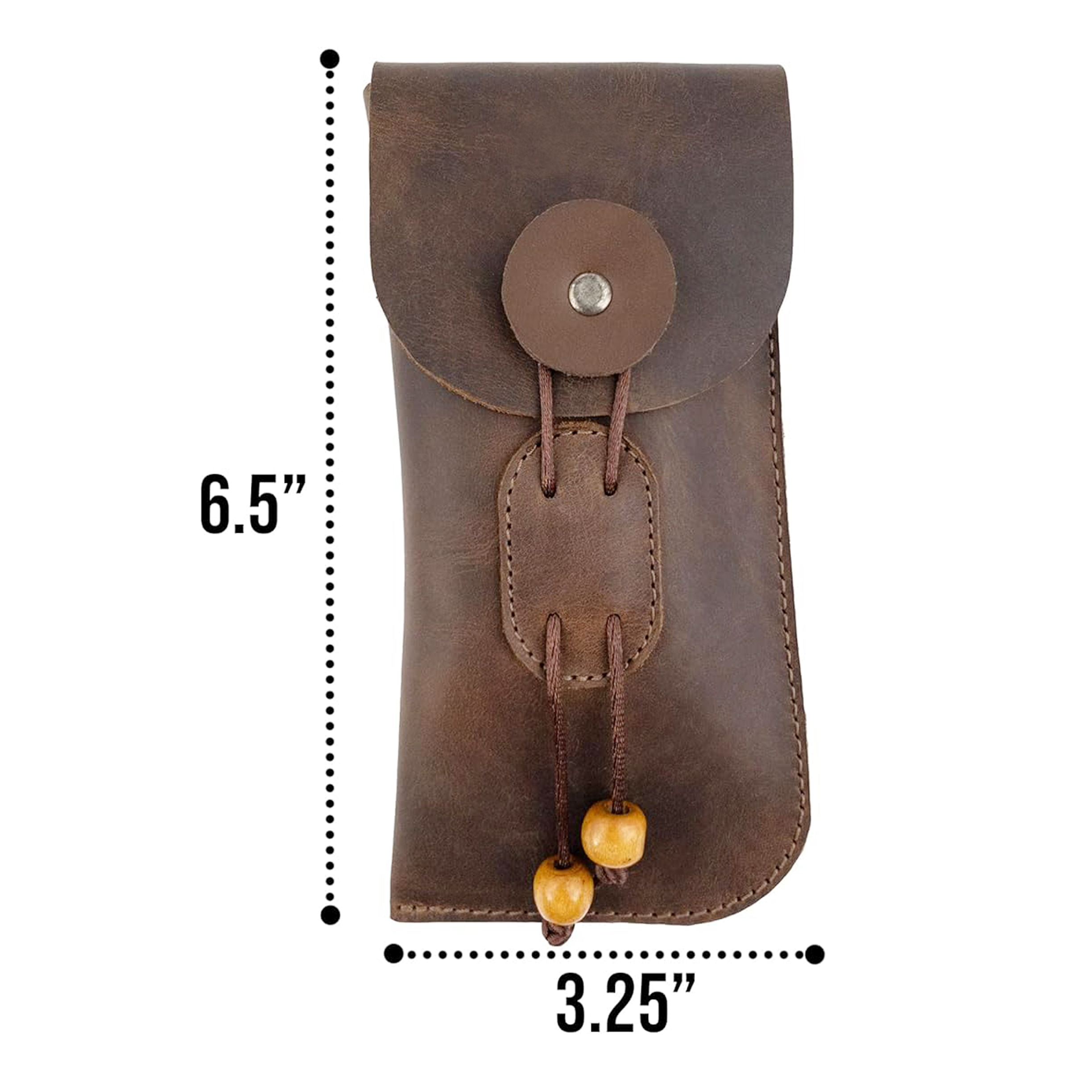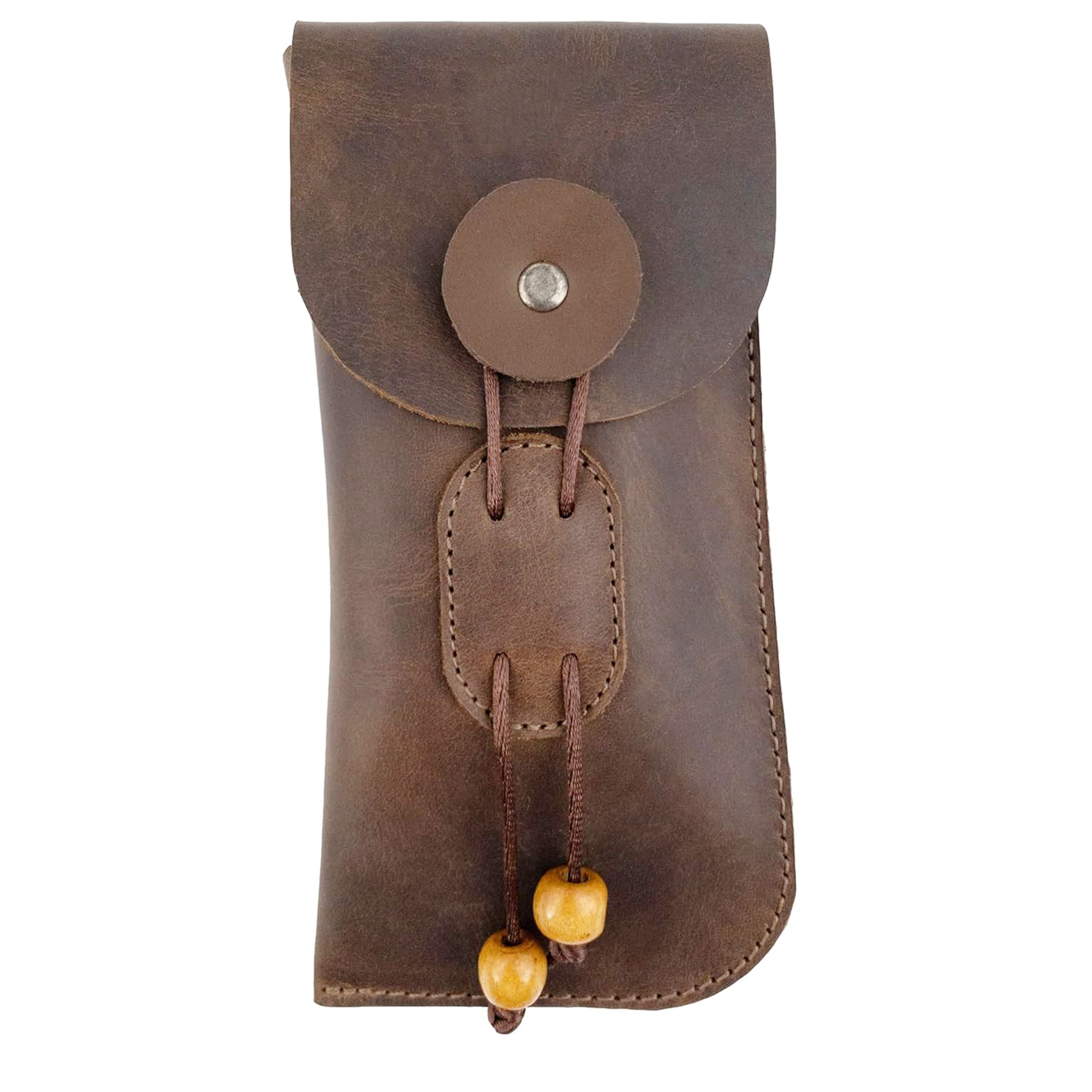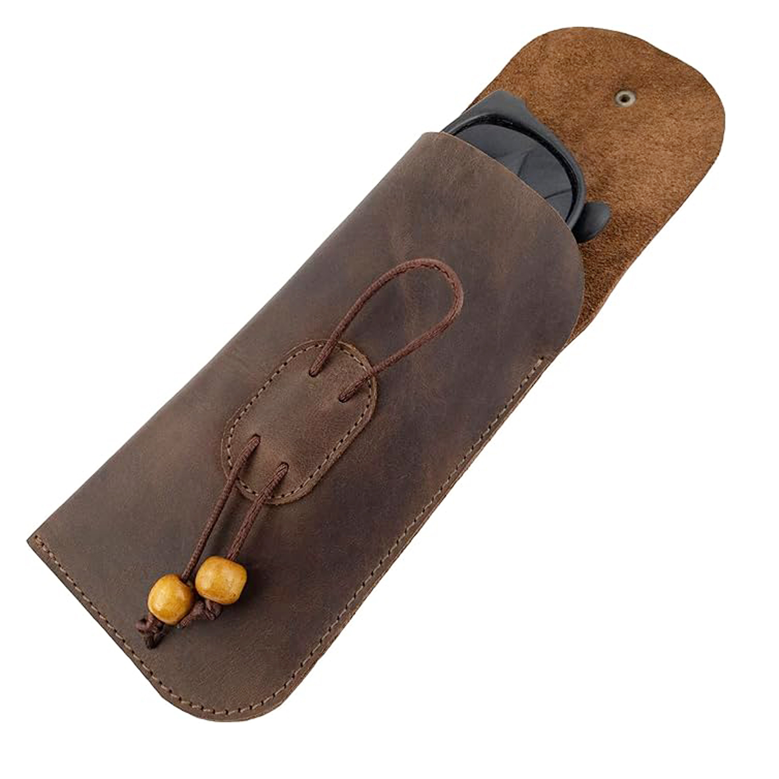 Crafted from full grain leather, the eyeglasses case is both durable and luxurious. The bourbon brown color adds a touch of sophistication, making it a stylish accessory for any occasion. Full grain leather is known for its strength and durability, ensuring that your sunglasses are well-protected from scratches, dust, and impacts. The handmade construction highlights the attention to detail and quality, with reinforced stitching providing added durability.
