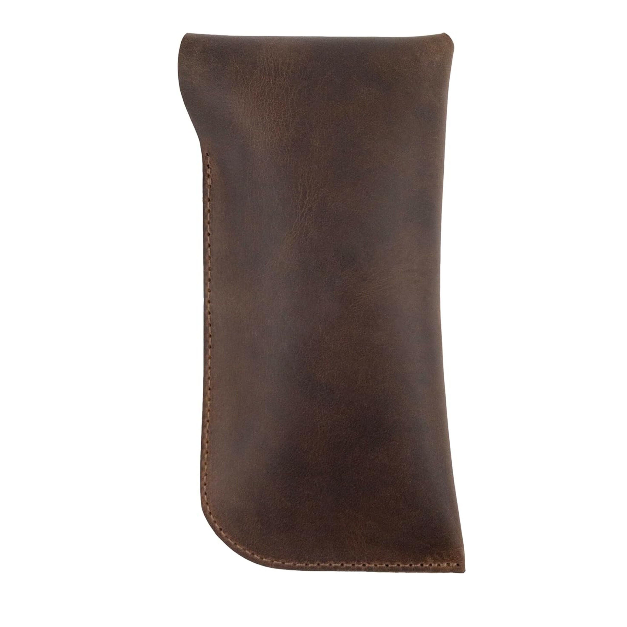 The handmade full grain leather eyeglasses case in bourbon brown is a durable and soft travel accessory, offering safe storage for your sunglasses. Its combination of premium quality, secure storage, and stylish design makes it a valuable addition to your everyday essentials.0