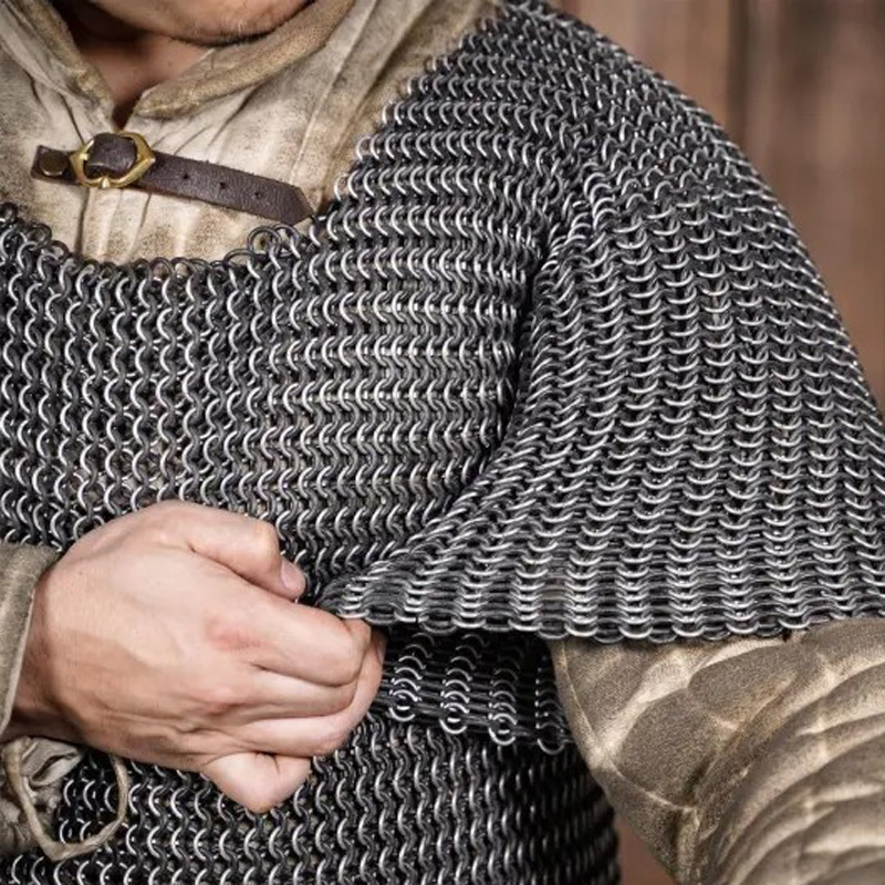 – **Construction**: Consists of interlocking metal rings woven in a classic 4-in-1 European pattern, which is the most common design for chainmail.