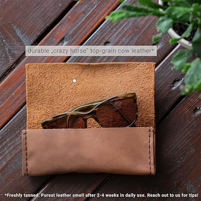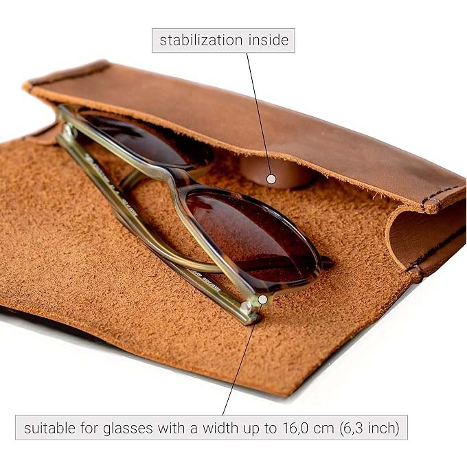 Designed to provide maximum protection, the leather glasses case keeps your reading glasses and sunglasses safe from scratches, dust, and impacts. The soft leather interior gently cradles your eyewear, preventing any damage to the lenses. The secure closure keeps your glasses firmly in place, ensuring they remain protected whether at home or on the go.