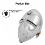 The Medieval Klappvisor Bascinet Helmet with Padded Liner is a meticulously crafted piece of armor, offering a blend of protection and historical authenticity. Made from high-quality steel, this helmet features the iconic hinged “klappvisor,” allowing the wearer to raise or lower the visor for visibility and ventilation during combat. The pointed design of the bascinet enhances protection by deflecting strikes, while the padded liner ensures a comfortable and secure fit for extended wear. Popular among knights in the 14th century, this bascinet helmet is perfect for LARP, historical reenactments, or display, capturing the essence of medieval warfare with style and functionality.