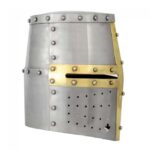 The Sugar Loaf Helmet is a classic piece of medieval armor, known for its rounded, conical shape that provides excellent deflection against blows, much like the great helm but with a refined design. Crafted from durable steel and featuring a polished finish, this helmet is both protective and visually striking. Its fully enclosed style offers superior head protection, while its smooth contours give it the distinctive “sugar loaf” appearance, making it popular among knights during the Crusades. Ideal for reenactments, LARP, or as a display piece, the Sugar Loaf Helmet represents the evolution of medieval armor, combining functionality with iconic historical style.